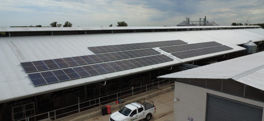 De los cuatro módulos proyectados, uno ya está en pleno funcionamiento, albergando 280 vacas que producen más de 30 litros por día. Justamente este módulo del tambo ha sido el piloto para la incorporación de energía renovable a través de los mencionados paneles solares.